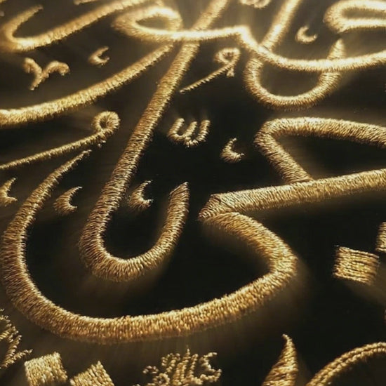 A beautifully crafted Aks-e-Kiswah piece featuring four ayat woven in Jacquard design — inspired by the original Kiswah of the Holy Kaaba.